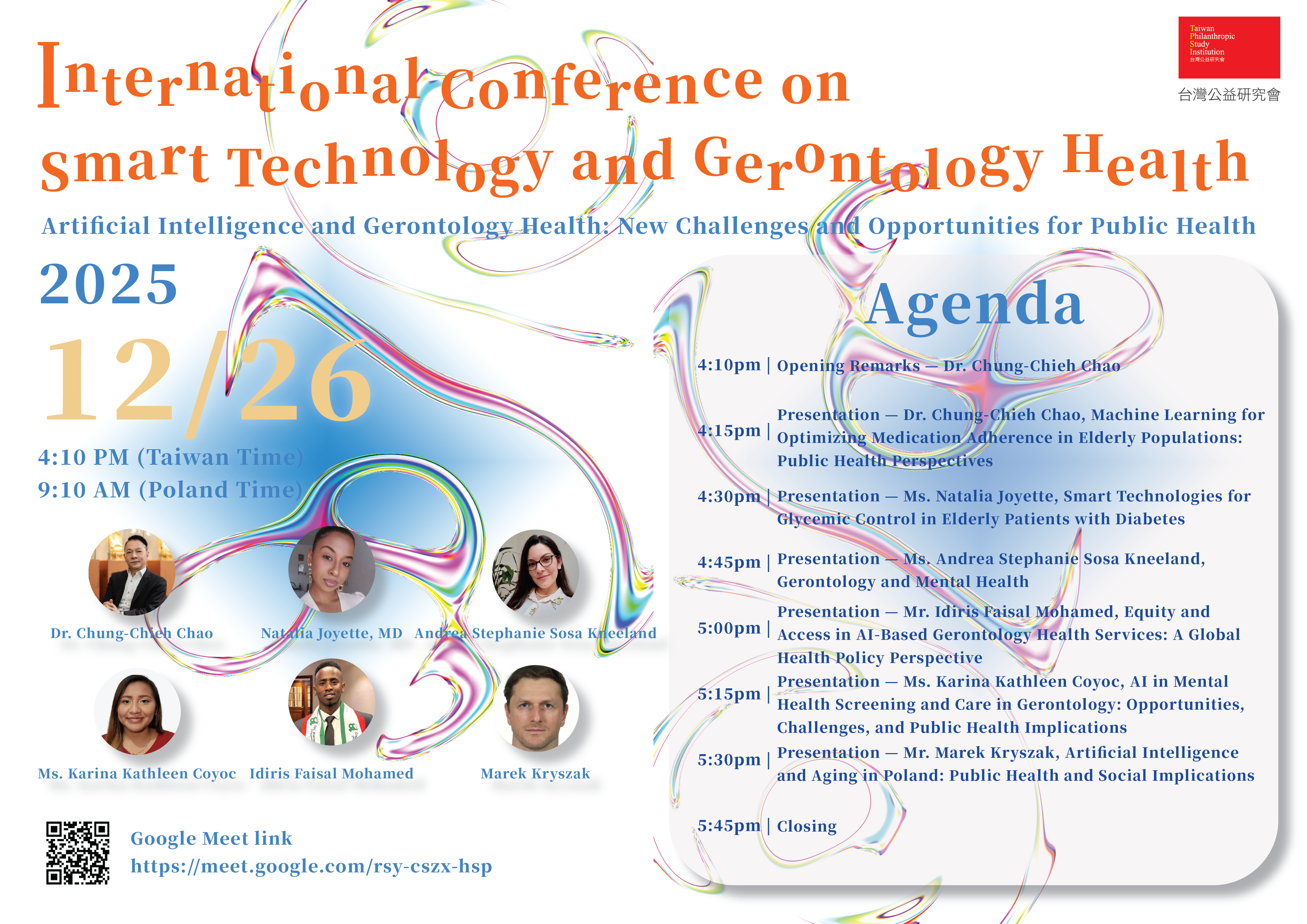 於2025年12月26日成功舉辦,匯聚來自多個國家的專家學者,共同探討智慧科技在高齡健康與公共衛生領域的多樣應用與未來發展方向。